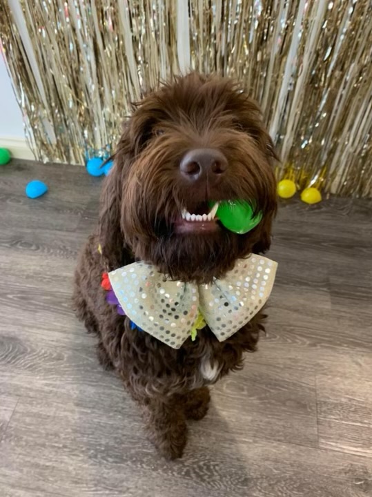 Dennis, the friendly and calm labradoodle, is not only a registered emotional support animal but also an expert in providing comfort through pet therapy, therapeutic walks, and yoga poses like the downward dog. He is adored for his love of treats and napping in the office, while also impressing everyone with his impressive training to sit, shake, and lay down, showcasing his versatility and charm as the ultimate support companion.